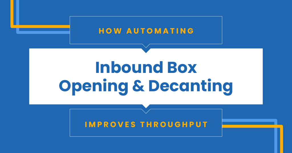Many people use “decanting” and “opening boxes” interchangeably to describe how a warehouse gets product from a truck and into the warehouse system as quickly and efficiently as possible. It’s a process that can be human-operated, fully automated, or a combination of the two.
