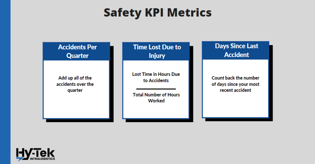 Safety KPIs are performance indicators that help companies determine their safety standards. By tracking these KPIs, companies can gain insights into where they need to allocate resources to improve safety standards within the warehouse.